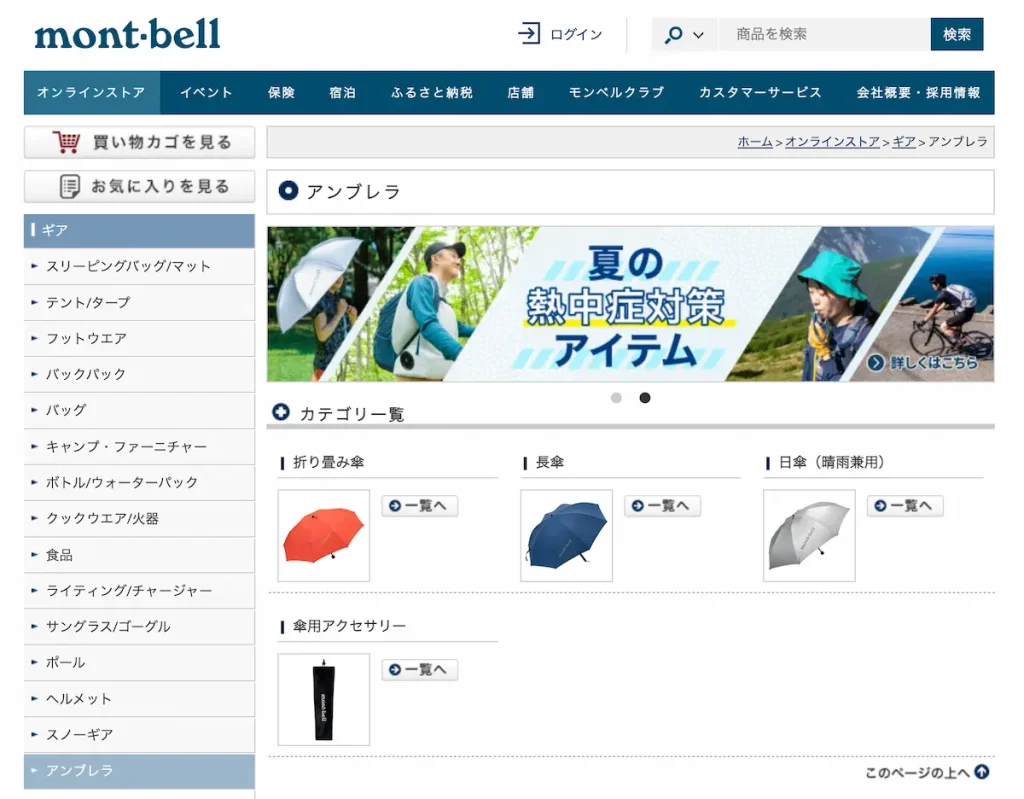 - 90gクラスの超軽量「トラベルアンブレラ」など、山発想の素材設計(バリスティック エアライト®ナイロン/カーボン骨)。**UVカット99.7%**のモデルも。