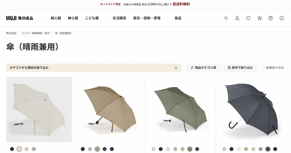 - 晴雨兼用・軽量の折りたたみや、**“2通りにたためる”**など実用的アイデア。1,990~2,990円。
