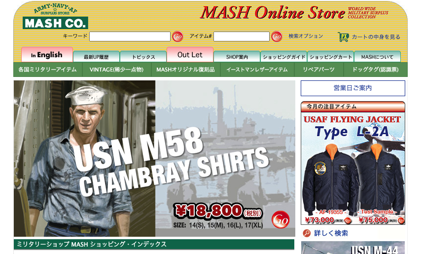 国内最大級の品揃えを誇る老舗ミリタリー専門店。