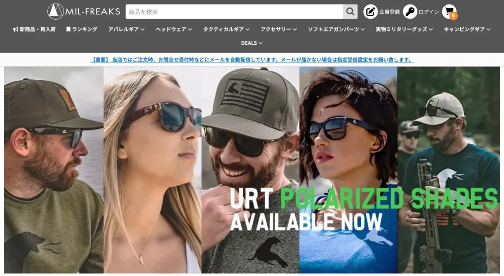 各国の珍しい軍用品や現行スペックの装備を独自の目線でセレクト。