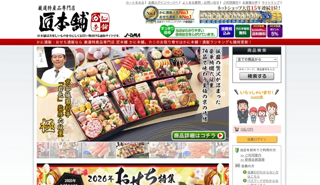 - 概要・特徴 「正月くらいは、本格的な味を楽しみたい」と考えるなら、「匠本舗」が有力な候補になります。全国の有名料亭が監修したオリジナルおせちが最大の特長で、その信頼性は累計販売個数370万個という実績が物語っています。こだわりは「冷蔵(生おせち)」であること。解凍の手間がなく、作りたてに近い風味を味わえます。